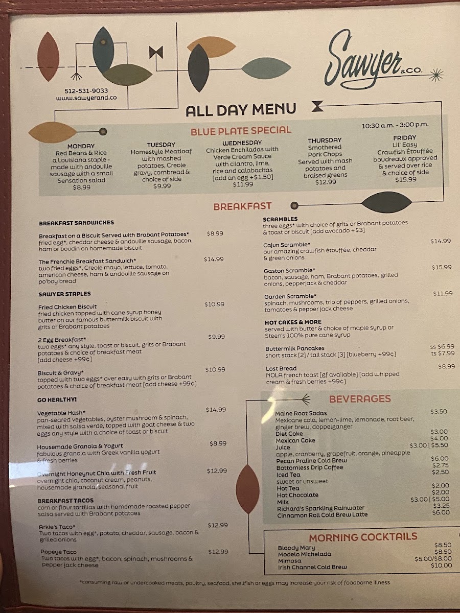 Welcome to Sawyer & Co, a hidden gem nestled in Austin's vibrant culinary scene at 4827 E Cesar Chavez St. This delightful establishment is the perfect spot for breakfast, brunch, or lunch, offering a menu that celebrates Southern comfort food with a unique twist.